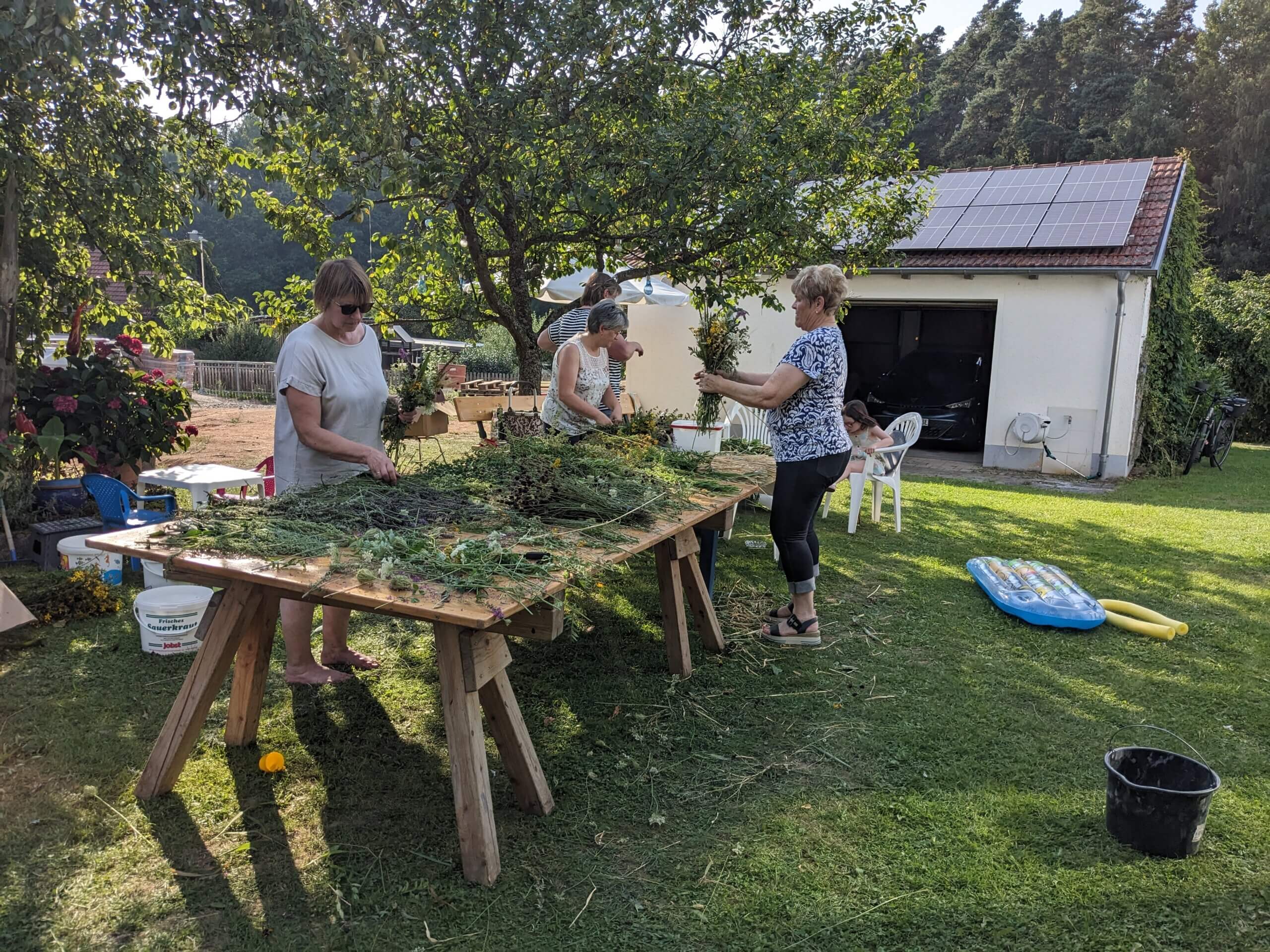 Der Katholische Frauenbund Pirk traf sich zum Kräuterbuschen binden in der Ziegelhütte. Tage vorher war sammeln angesagt - Wiesenknöpfchen, Beifuß und Schafgarbe, Zinnkraut, Getreide, Johanniskraut, Lavendel, Mais, Kamille und einige Wildblumen. Dank Blumenspenden waren wir gut aufgestellt und konnten schöne Buschen binden. Unter den Bäumen war es angenehm schattig und Weiterlesen